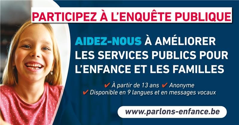 Et si on prenait le temps de parler d’un sujet qui nous rassemble, qui nous est commun et qui compte pour aujourd’hui comme pour demain ? L’Office de la Naissance et de l’Enfance (ONE) en Belgique organise “Parlons enfance”, une vaste enquête publique ouverte à toutes et tous dès 13 ans. Chacun est invité à s’exprimer librement sur ses besoins, ses préoccupations et ses espoirs pour l’enfance, l’adolescence et la parentalité (Octobre-Novembre 2025).